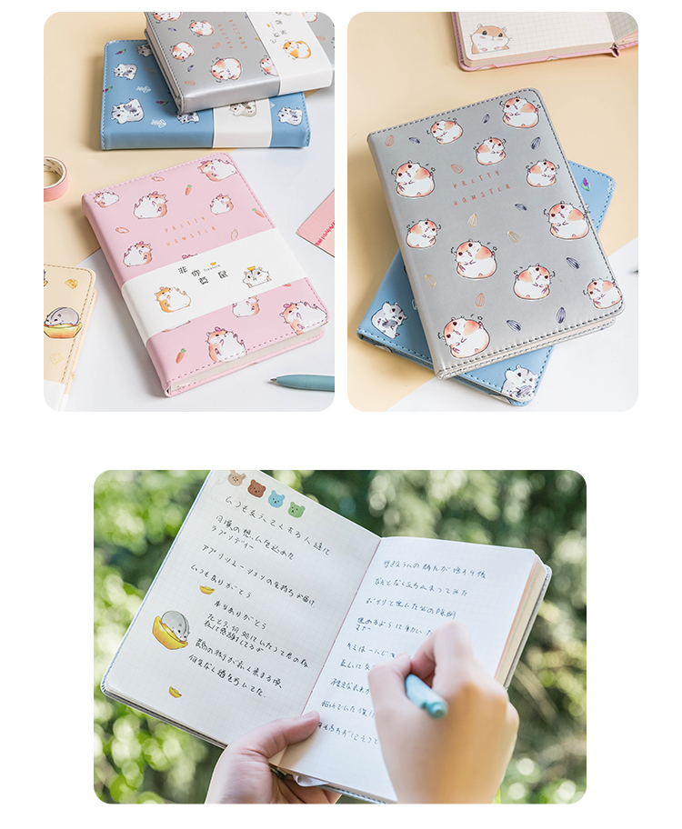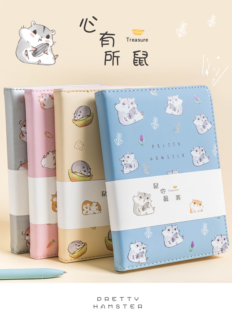 三年二班 A5/112张心有所鼠皮面本 彩色内页手账本 高颜值可爱手帳记事本ノート子文具 鼠来宝-金黄色