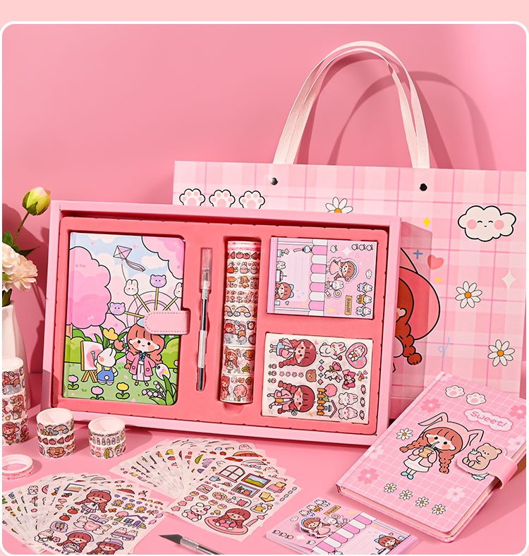 | 商品名称 | 可愛い手帳セット新年プレゼント乙女心学生用ノート手帳元旦プレゼント子供にデリケートなカートゥーン手帳セット材料文房具セットドーナツ手帳セット+200貼紙軟萌甜心巻 |